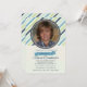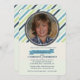 A classy design of diagonal stripes in hues of blue, cream and lime green with a round photo window and a blue ribbon. Well-suited for most happy occasions when the featured cross is eliminated.