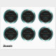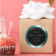 The design features a bright shimmering teal glitter frame with tiny sparkling stars on a plain black background.