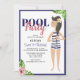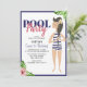 Dive into the nostalgia of a quintessential pool party from a bygone era. Our classy birthday invitation, designed for older children, will make a splash with its vintage charm. Featuring a young female in a retro bathing suit and a flower in her hair, the card integrates tropical elements and a modern, easy-to-customise template. Get ready for a birthday bash that's all about fun, style, and memorable moments.