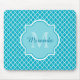 Classy Turquoise Blue Quatrefoil Monogram and Name Mouse Mat