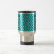 Classy Turquoise Blue Quatrefoil Monogram and Name Travel Mug