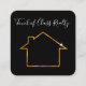 Real estate theme business cards with a classy two side design featuring a gold coloured house symbol and your company or name featured on the presentation side and your contact and service information on the detail side with a touch of elegance and class. Designed for an upscale or luxury real estate broker, agent, or agency. A home inspector or appraiser would also appreciate this design presented on rounded corner card stock.