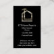 Classy construction handyman business cards in an upscale design with silver tone house and hammer graphic logo you can use on our cards created on thick black core business card stock in vertical format. Hand out your business cards with a show of confidence.