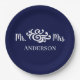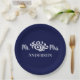 Classy wedding shower paper plates in navy blue and white with Mr. & Mrs. in elegant script. Beautiful couples shower or wedding reception decorations for newlywed couples. Personalise with bride and groom's last name. You can also customise it to match the wedding colours by changing the background colour and/or the colour of the text. Just click the Personalise button, then click the Customise further link.
