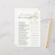 Elegant white bow “20 Questions About the Bride” game card featuring chic script typography on a clean, minimal background. Perfect for adding laughter and fun to a bridal shower, wedding shower, or bachelorette party, especially for bow-themed or black-and-white celebrations. Guests answer personal and lighthearted questions about the bride, making it a keepsake she’ll cherish. Coordinates perfectly with matching invitations, décor, and stationery in the same white bow design.