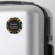 Birthday magnet with an elegant and stylish pattern. Pretty yellow sunflowers and green leaves surrounded by delicate gold chains. Black background.