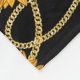 Blanket with an elegant and stylish pattern. Pretty yellow sunflowers and green leaves surrounded by delicate gold chains. Black background. A black rectangle with a white border layered over top with a personalised name inside.