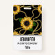 Classy Yellow Sunflowers Stylish Pattern on Black ID Badge