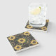 Classy Yellow Sunflowers Stylish Pattern on Black Stone Coaster