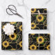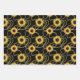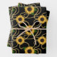 Classy Yellow Sunflowers Stylish Pattern on Black Wrapping Paper Sheet
