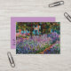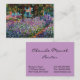 A colourful classic business card featuring irises in a garden, painted by the French impressionist painter Claude Monet.