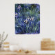 A beautiful classic flower poster featuring irises, painted by the French impressionist painter Claude Monet.