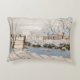 The cushion is small to medium sized. It can be washed. It is well constructed. The material used is pleasant and feels decent quality. It has a very slight plush feel which is good. It is well labelled and its care clearly stated. Theres nothing not to like about it. All in all a good item. The deduction of one star overall is due to long delays in delivery to the UK. It's not clear if this was due to Zazzle or somewhere else in the chain as I did not receive status updates of dispatch or progress. I cannot comment anymore on that other than to say that was our experience but it may not be the same for you. The printing was surprisingly close to what we were expecting. Its an art piece and on material so its hard to assess the precision of printing but it seems close to the original. The soft lines are reproductions of the original. The colour is a fair reflection of the painting. This was printed in the US and it looks like US quality. No issues.