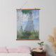 Claude Monet, Woman With A Parasol, 1800s. Old famous painting with a girl on a white dress holding a green umbrella on a garden or hill in an impressionist style. Printed on a wood-framed wall-hanging tapestry. CCO license, public domain art.