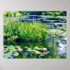A tranquil pond filled with lush greenery and blooming water lilies. Sunlight reflects off the water, creating a harmonious natural scene.