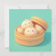 This heart-melting design features three incredibly sweet steamed dumplings with simple, joyful faces and soft rosy cheeks. Rendered in a high-quality 3D clay style, the dumplings have a smooth, matte doughy texture and are clustered together inside a light brown bamboo steamer basket. The open lid of the steamer rests behind the dumplings, suggesting a fresh and warm meal just ready to be enjoyed. Set against a clean, solid teal background, the minimalist and "kawaii" aesthetic creates a charming food-themed scene that is perfect for anyone who loves dim sum, Asian cuisine, or whimsical character art. This cheerful dumpling postcard is a wonderful choice for sending a "thinking of you" note or a playful greeting to your favorite dining partner. You might choose to use this cute food card for a brunch invitation or to celebrate a fun culinary milestone with your family members. It also makes a precious decorative piece for a kitchen wall or a bright addition to a food-themed scrapbook as a small token of happiness. This versatile design is also an excellent choice for restaurant anniversary announcements, Lunar New Year party invites, or as a heartwarming way to share a short message of joy for any situation or event.
