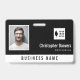Office employee badge with a clean minimalist design in black and white. Add a photo of the employee along with name and profession. Personalise further with your business logo and the name of the company.
