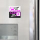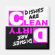 Magnet to place on the front of your dishwasher to help remember if dishes are clean or dirty. Features pink and white letters.