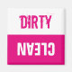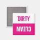 Clean dirty dishwasher sign magnets | Neon pink and white. Handy kitchen accessory for washing the dishes. Dishwashing help for home or office.