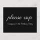 This clean, elegant RSVP postcard design features the message "please rsvp" on the front, along with a customisable event name. It also features a customisable RSVP form on the back, along with a customisable address that the completed RSVP cards would be mailed to. RSVP cards like this might be used to find out who will be attending a baby shower, a wedding reception, a birthday party, or some other celebration.