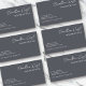 Clean minimalist business card in dark grey for any profession with your name in a signature script in white against a grey background. One sided professional business card with a combination of modern script and sans serif for a generic yet stylish look, iron grey on one side and blank white on the other side so you can jot down notes for your clients by hand.