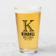 Groomsman beer glass favour personalised with initial, name, role, and the date in a clean no nonsense typography design.