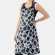 Clean monochrome wildflowers in navy on cream apron