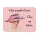 This fun magnet features a vintage image of a woman in a fancy hat. The customisable text says, "Make yourself at home. Clean my kitchen." The text, and background colour, can be customised to fit your needs.