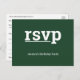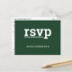 This clean, respectable RSVP postcard design features the message "rsvp" on the front, along with a customised event/occasion name. It also features a customisable RSVP form on the back, along with a customisable address that the completed RSVP cards would be mailed to. RSVP cards like this might be used to find out who will be attending a graduation party, a wedding shower, a wedding reception, a Christmas party, or some other event.