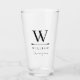 Monogrammed beer glass for your groomsman with his initial atop his name in a simple, minimalist design and his role in the wedding party in a casual script.