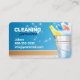 Advertising your cleaning services with this fun business card. A bucket of soap suds, filled with cleaning supplies and sparkles all around, gives this blue background design a clean and fresh feel. It allows you to edit your services, location, contact name, phone number and email, and advertise a feature in a yellow bubble on the back.