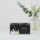 An elegant and glamourous business card on a black background decorated with faux silver glitter dust on front and cleaning equipment. Personalise and add Your photo, name, text contact info and your own QR code to your website address.