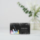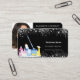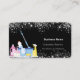 An elegant and glamourous business card on a black background decorated with faux silver glitter dust on front and cleaning equipment. Personalise and add Your photo, name, text contact info and your own QR code to your website address.