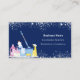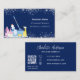 An elegant and glamourous business card on a navy blue background decorated with faux silver glitter dust on front and cleaning equipment. Personalise and add Your name, text contact info and your own QR code to your website address.
