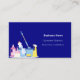 A navy blue background decorated with cleaning equipment. Personalise and add Your photo, name, text contact info and your own QR code to your website address. White text.