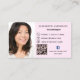An elegant business card on a blush pink background decorated with cleaning equipment. Personalise and add Your photo, name, text contact info and your own QR code to your website address.