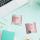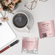 An elegant and glamourous business card on pink gradient background decorated with faux silver glitter dust on front and cleaning equipment. Personalise and add Your name, text contact info and your own QR code to your website address.