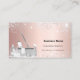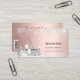 An elegant and glamourous business card on a blush, rose gold faux metallic looking background decorated with faux silver glitter dust on front and cleaning equipment. Personalise and add Your name, text contact info and your own QR code to your website address.