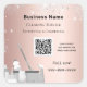 Blush, rose gold faux metallic looking background decorated with faux silver glitter dust and cleaning equipment. Personalise and add Your name, text and your own QR code to your website address.