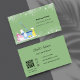An elegant and glamourous business card on a sage green background decorated with faux silver glitter dust on front and cleaning equipment. Personalise and add Your name, text contact info and your own QR code to your website address.