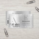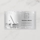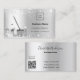 An elegant and glamourous business card on a faux silver metallic looking background decorated with faux glitter dust on front and cleaning equipment. Personalise and add Your business logo, name, text contact info and your own QR code to your website address.
