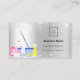 An elegant and glamourous business card on a faux silver looking background decorated with faux glitter dust on front and cleaning equipment. Personalise and add Your business logo, name, text contact info and your own QR code to your website address.