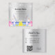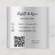 An elegant and glamourous business card on a faux silver metallic looking background decorated with faux glitter dust on front and cleaning equipment. Personalise and add Your name, text contact info and your own QR code to your website address.