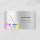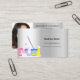 An elegant and glamourous business card on a faux silver looking background decorated with cleaning equipment. Personalise and add Your photo, name, text contact info and your own QR code to your website address.