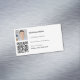 A classic white background. Personalise and add Your photo, name, text, contact info and your own url to your website or your social media account to the QR code. Black text.