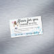Business card with white light blue tiles and bubbles background with the picture of cleaning lady with caramel skin tone with brown hair and brown eyes dress in a white t-shirt and jeans holding cleaning tools and pink accessories. Plenty of space to edit your business information and write slogans and more. Make your own personalised business card.