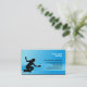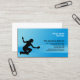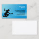 In this Cleaning Services business card, the silhouette of a woman using a cleaning a glass door forms the main image over a striped gradient blue background. Customise this card immediately with your name and details.