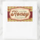 Script "Honey" jar product label over a bright herringbone pattern that draws the eye to your products for sale at the farmer's market, fundraiser, and wedding favours. Customised text for any type of honey, honey quality or colour, beekeeper or apiary business name, contact information and net weight. Herrngbone pattern looks great on rectangular, square and rounds stickers. © dotpattern