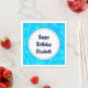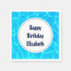 Personalised birthday party paper napkins with a photograph of clear blue pool water, with shimmering reflections.