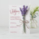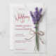 The design celebrates the exquisite beauty of lavender blooms and the serene blue elements with a clear and minimalist style that adds a unique touch. Delicate floral accents and natural elements frame the invitation, enhancing its overall allure. The text is thoughtfully presented in an elegant and clear font, adding an intimate and heartfelt touch to the invitation.